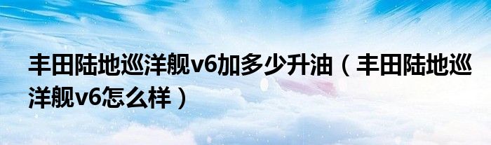 大家好,阳阳来为大家讲解下。丰田陆地巡洋舰v6加多少升油,丰田陆地巡洋舰v6怎么样很多人还不知道,现在让我们一起来看看吧!