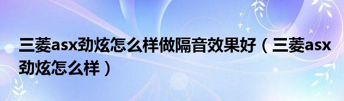 大家好,阳阳来为大家讲解下。三菱asx劲炫怎么样做隔音效果好,三菱asx劲炫怎么样很多人还不知道,现在让我们一起来看看吧!