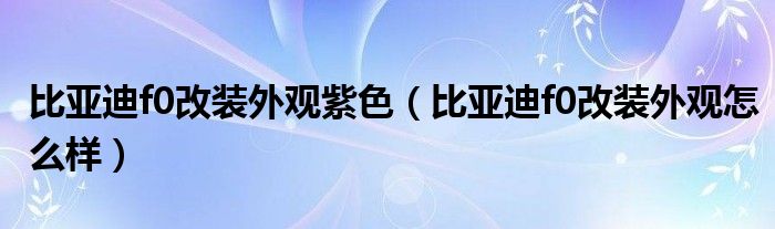 比亚迪f0改装外观紫色(比亚迪f0改装外观怎么样)