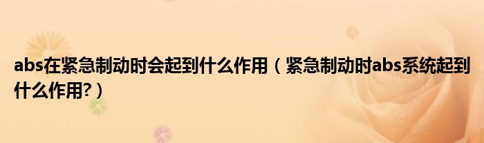大家好,小美来为大家解答以上问题。abs在紧急制动时会起到什么作用,紧急制动时abs系统起到什么作用?很多人还不知道,现在让我们一起来看看吧!