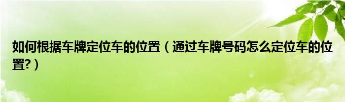 大家好,小美来为大家解答以上问题。如何根据车牌定位车的位置,通过车牌号码怎么定位车的位置?很多人还不知道,现在让我们一起来看看吧!