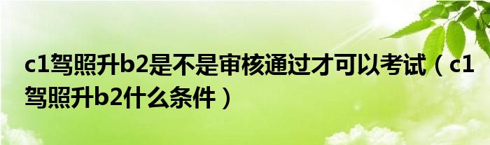 大家好,小美来为大家解答以上问题。c1驾照升b2是不是审核通过才可以考试,c1驾照升b2什么条件很多人还不知道,现在让我们一起来看看吧!