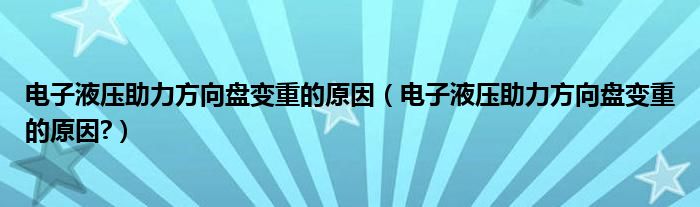 大家好,小美来为大家解答以上问题。电子液压助力方向盘变重的原因,电子液压助力方向盘变重的原因?很多人还不知道,现在让我们一起来看看吧!