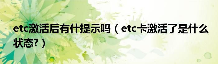 大家好,小美来为大家解答以上问题。etc激活后有什提示吗,etc卡激活了是什么状态?很多人还不知道,现在让我们一起来看看吧!