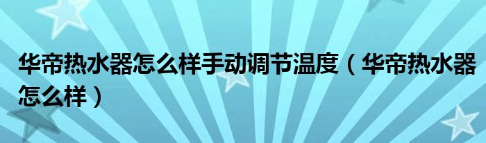 关于华帝热水器怎么样手动调节温度,华帝热水器怎么样这个很多人还不知道,今天菲菲来为大家解答以上的问题,现在让我们一起来看看吧!