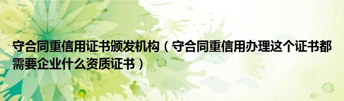 关于守合同重信用证书颁发机构,守合同重信用办理这个证书都需要企业什么资质证书这个很多人还不知道,今天菲菲来为大家解答以上的问题,现在让我们一起来看看吧!