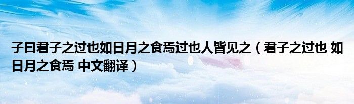 关于子曰君子之过也如日月之食焉过也人皆见之,君子之过也 如日月之食焉 中文翻译这个很多人还不知道,今天菲菲来为大家解答以上的问题,现在让我们一起来看看吧!