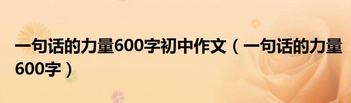 关于一句话的力量600字初中作文,一句话的力量600字这个很多人还不知道,今天菲菲来为大家解答以上的问题,现在让我们一起来看看吧!