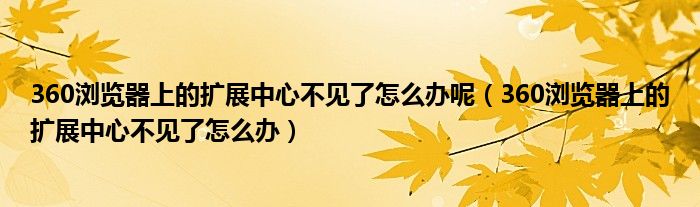 关于360浏览器上的扩展中心不见了怎么办呢,360浏览器上的扩展中心不见了怎么办这个很多人还不知道,今天菲菲来为大家解答以上的问题,现在让我们一起来看看吧!