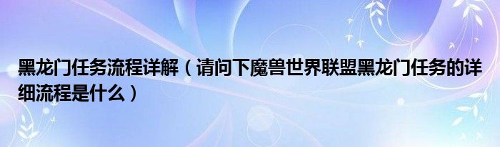 关于黑龙门任务流程详解,请问下魔兽世界联盟黑龙门任务的详细流程是什么这个很多人还不知道,今天菲菲来为大家解答以上的问题,现在让我们一起来看看吧!