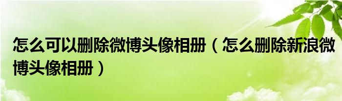 怎么可以删除微博头像相册(怎么删除新浪微博头像相册)