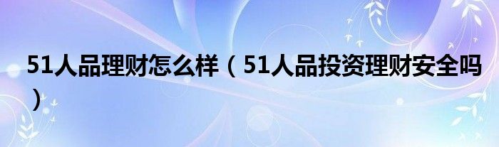51人品理财怎么样(51人品投资理财安全吗)