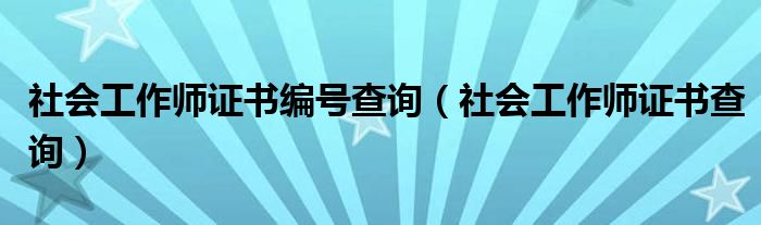 关于社会工作师证书编号查询,社会工作师证书查询这个很多人还不知道,今天菲菲来为大家解答以上的问题,现在让我们一起来看看吧!