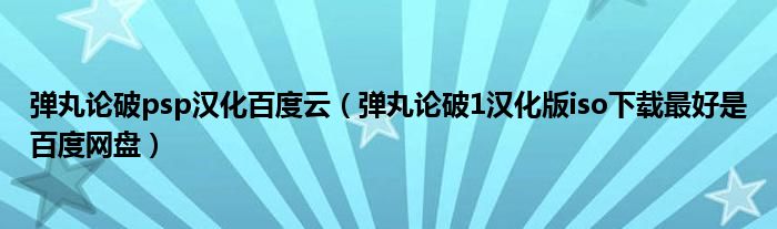 关于弹丸论破psp汉化百度云,弹丸论破1汉化版iso下载最好是百度网盘这个很多人还不知道,今天菲菲来为大家解答以上的问题,现在让我们一起来看看吧!