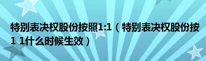 关于特别表决权股份按照1:1,特别表决权股份按1 1什么时候生效这个很多人还不知道,今天菲菲来为大家解答以上的问题,现在让我们一起来看看吧!