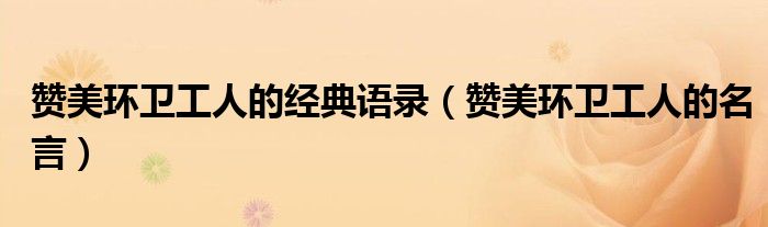 关于赞美环卫工人的经典语录,赞美环卫工人的名言这个很多人还不知道,今天菲菲来为大家解答以上的问题,现在让我们一起来看看吧!