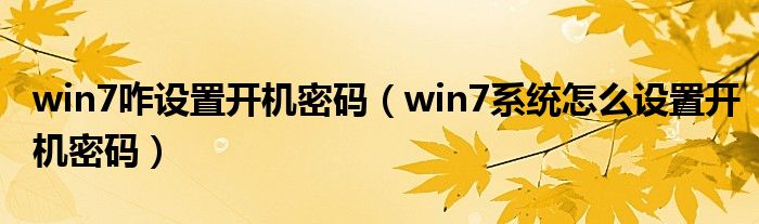 关于win7咋设置开机密码,win7系统怎么设置开机密码这个很多人还不知道,今天菲菲来为大家解答以上的问题,现在让我们一起来看看吧!