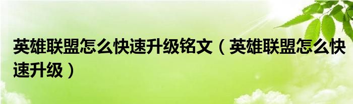 英雄联盟怎么快速升级铭文(英雄联盟怎么快速升级)