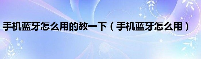 关于手机蓝牙怎么用的教一下,手机蓝牙怎么用这个很多人还不知道,今天菲菲来为大家解答以上的问题,现在让我们一起来看看吧!