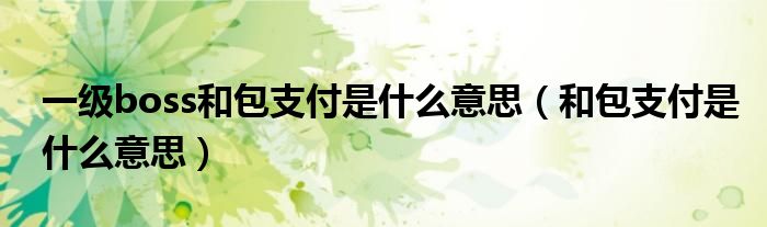 关于一级boss和包支付是什么意思,和包支付是什么意思这个很多人还不知道,今天菲菲来为大家解答以上的问题,现在让我们一起来看看吧!