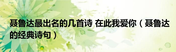 关于聂鲁达最出名的几首诗 在此我爱你,聂鲁达的经典诗句这个很多人还不知道,今天菲菲来为大家解答以上的问题,现在让我们一起来看看吧!