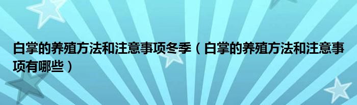 1、白掌的养殖方法: 土壤:白掌盆栽要求土壤疏松、排水和通气性好,不可用粘重土壤,一般可用腐叶土、泥炭土拌和少量珍珠岩配制成基质;种植时加少量有机肥作基肥。