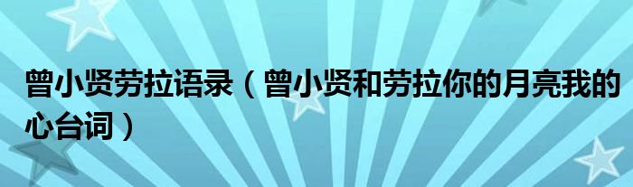 关于曾小贤劳拉语录,曾小贤和劳拉你的月亮我的心台词这个很多人还不知道,今天菲菲来为大家解答以上的问题,现在让我们一起来看看吧!