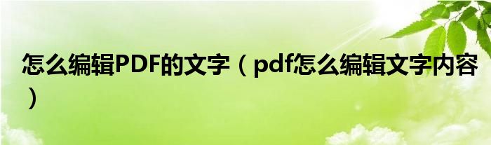关于怎么编辑PDF的文字,pdf怎么编辑文字内容这个很多人还不知道,今天菲菲来为大家解答以上的问题,现在让我们一起来看看吧!