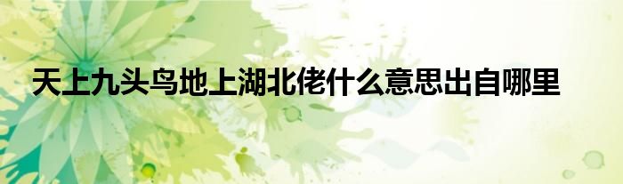 关于天上九头鸟地上湖北佬什么意思出自哪里这个很多人还不知道,今天菲菲来为大家解答以上的问题,现在让我们一起来看看吧!