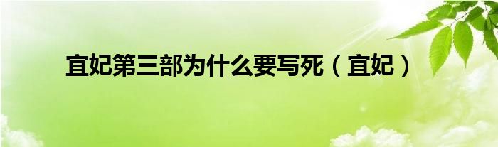 关于宜妃第三部为什么要写死,宜妃这个很多人还不知道,今天菲菲来为大家解答以上的问题,现在让我们一起来看看吧!
