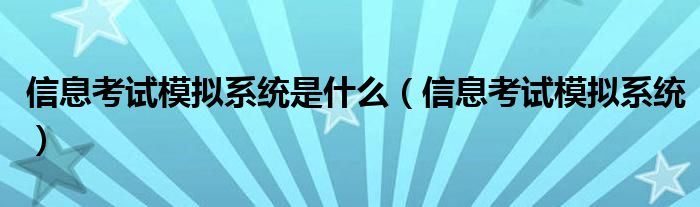 关于信息考试模拟系统是什么,信息考试模拟系统这个很多人还不知道,今天菲菲来为大家解答以上的问题,现在让我们一起来看看吧!
