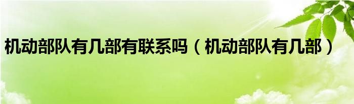 机动部队有几部有联系吗(机动部队有几部)
