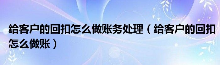 给客户的回扣怎么做账务处理(给客户的回扣怎么做账)