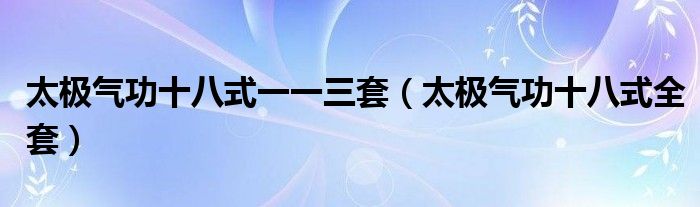 关于太极气功十八式一一三套,太极气功十八式全套这个很多人还不知道,今天菲菲来为大家解答以上的问题,现在让我们一起来看看吧!