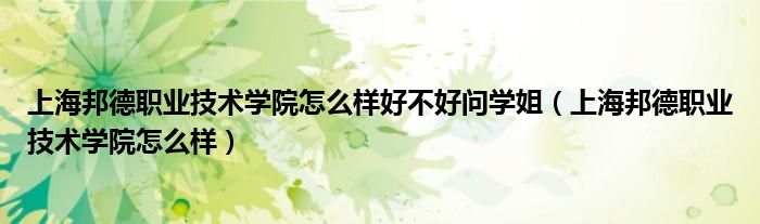 关于上海邦德职业技术学院怎么样好不好问学姐,上海邦德职业技术学院怎么样这个很多人还不知道,今天菲菲来为大家解答以上的问题,现在让我们一起来看看吧!