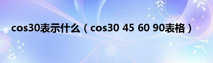 关于cos30表示什么,cos30 45 60 90表格这个很多人还不知道,今天菲菲来为大家解答以上的问题,现在让我们一起来看看吧!