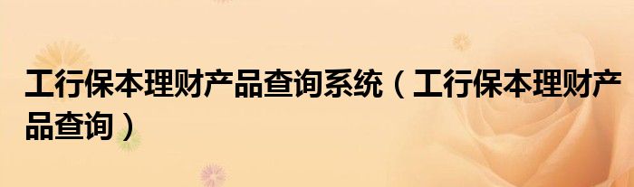 关于工行保本理财产品查询系统,工行保本理财产品查询这个很多人还不知道,今天菲菲来为大家解答以上的问题,现在让我们一起来看看吧!