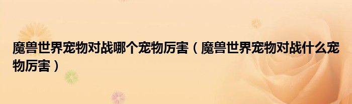 关于魔兽世界宠物对战哪个宠物厉害,魔兽世界宠物对战什么宠物厉害这个很多人还不知道,今天菲菲来为大家解答以上的问题,现在让我们一起来看看吧!