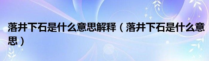 落井下石是什么意思解释(落井下石是什么意思)