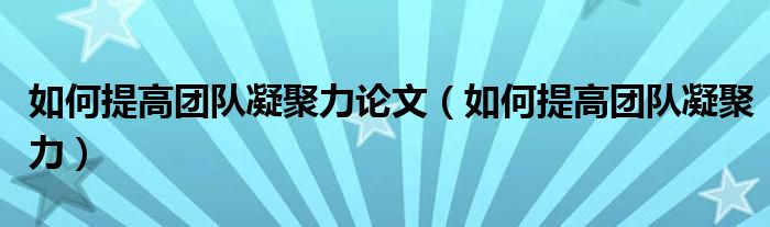 关于如何提高团队凝聚力论文,如何提高团队凝聚力这个很多人还不知道,今天菲菲来为大家解答以上的问题,现在让我们一起来看看吧!