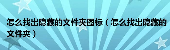 关于怎么找出隐藏的文件夹图标,怎么找出隐藏的文件夹这个很多人还不知道,今天菲菲来为大家解答以上的问题,现在让我们一起来看看吧!