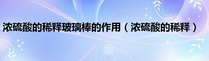 关于浓硫酸的稀释玻璃棒的作用,浓硫酸的稀释这个很多人还不知道,今天菲菲来为大家解答以上的问题,现在让我们一起来看看吧!