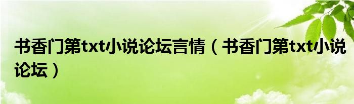 书香门第txt小说论坛言情(书香门第txt小说论坛)