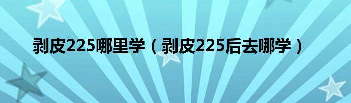 关于剥皮225哪里学,剥皮225后去哪学这个很多人还不知道,今天菲菲来为大家解答以上的问题,现在让我们一起来看看吧!