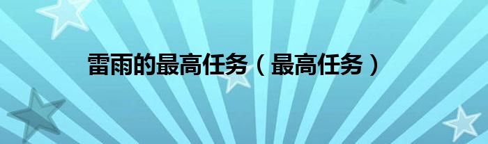 关于雷雨的最高任务,最高任务这个很多人还不知道,今天菲菲来为大家解答以上的问题,现在让我们一起来看看吧!