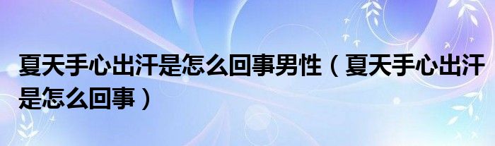 关于夏天手心出汗是怎么回事男性,夏天手心出汗是怎么回事这个很多人还不知道,今天菲菲来为大家解答以上的问题,现在让我们一起来看看吧!