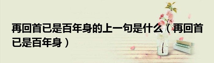 关于再回首已是百年身的上一句是什么,再回首 已是百年身这个很多人还不知道,今天菲菲来为大家解答以上的问题,现在让我们一起来看看吧!