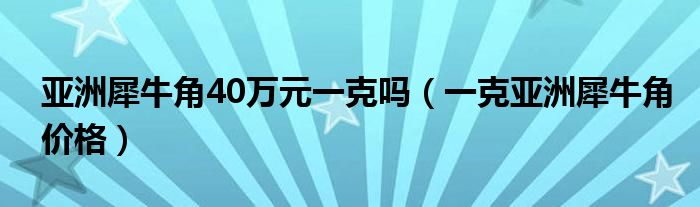 关于亚洲犀牛角40万元一克吗,一克亚洲犀牛角价格这个很多人还不知道,今天菲菲来为大家解答以上的问题,现在让我们一起来看看吧!