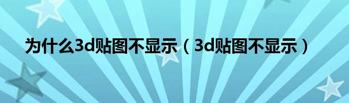 关于为什么3d贴图不显示,3d贴图不显示这个很多人还不知道,今天菲菲来为大家解答以上的问题,现在让我们一起来看看吧!