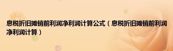 关于息税折旧摊销前利润净利润计算公式,息税折旧摊销前利润净利润计算这个很多人还不知道,今天菲菲来为大家解答以上的问题,现在让我们一起来看看吧!